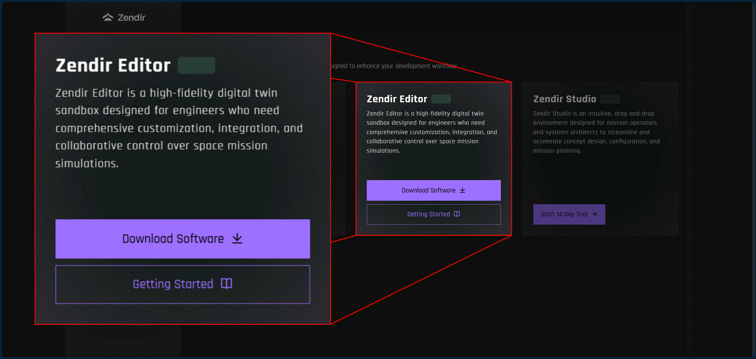 Download Zendir Editor (~1.7GB) from the user dashboard: