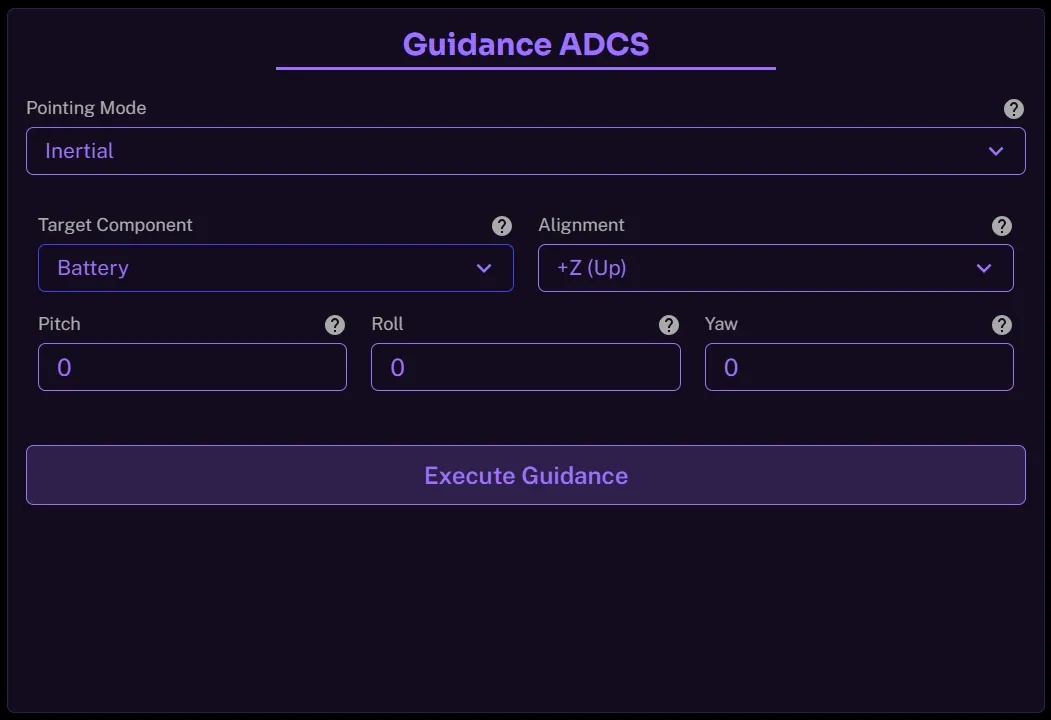 The spacecraft control provides a variety of pointing modes preprogrammed as a part of its Guidance ACDS.