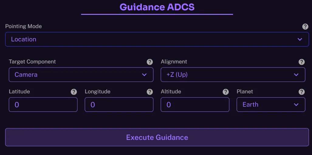 Once satisfied with the inputs, click on the Execute Guidance button to transmit the command.
