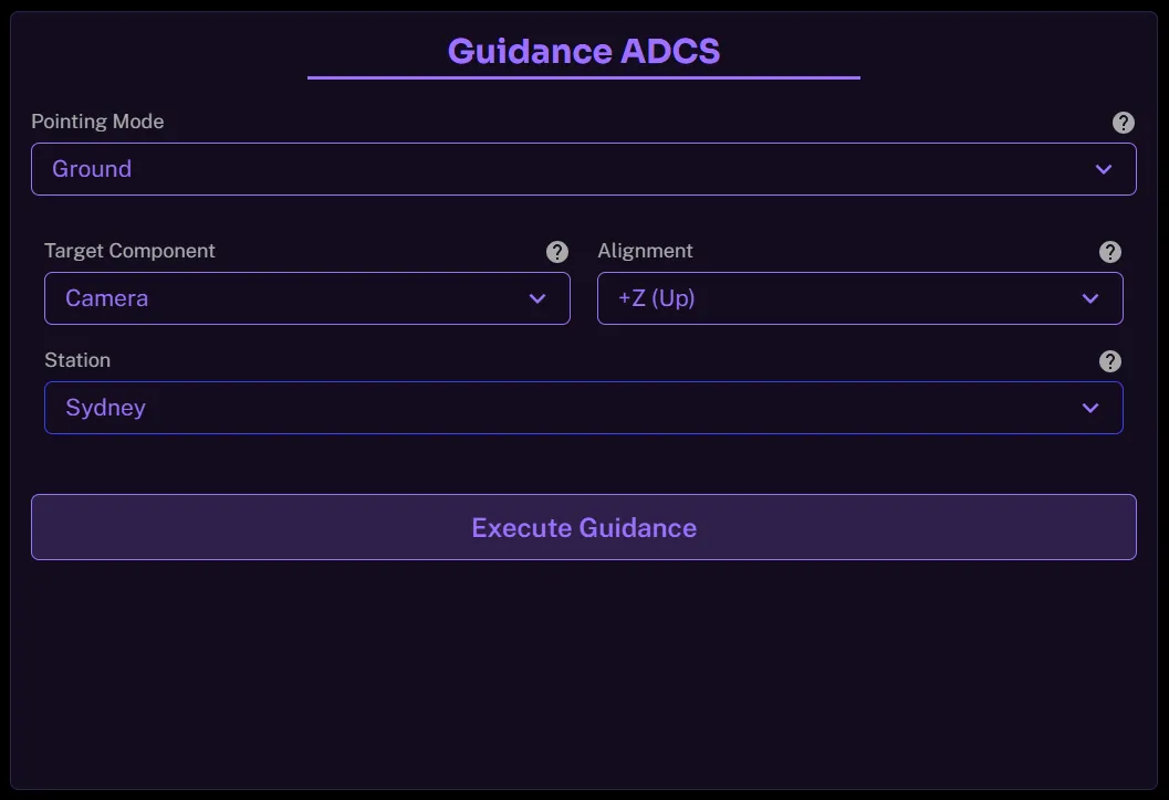 The spacecraft orients its payloads toward a specific ground station location on Earth. Unlike nadir pointing, this requires continuously adjusting the attitude to track the station as the spacecraft passes overhead. This mode ensures optimal link margin for high-rate data downlink or command uplink during ground contact windows.