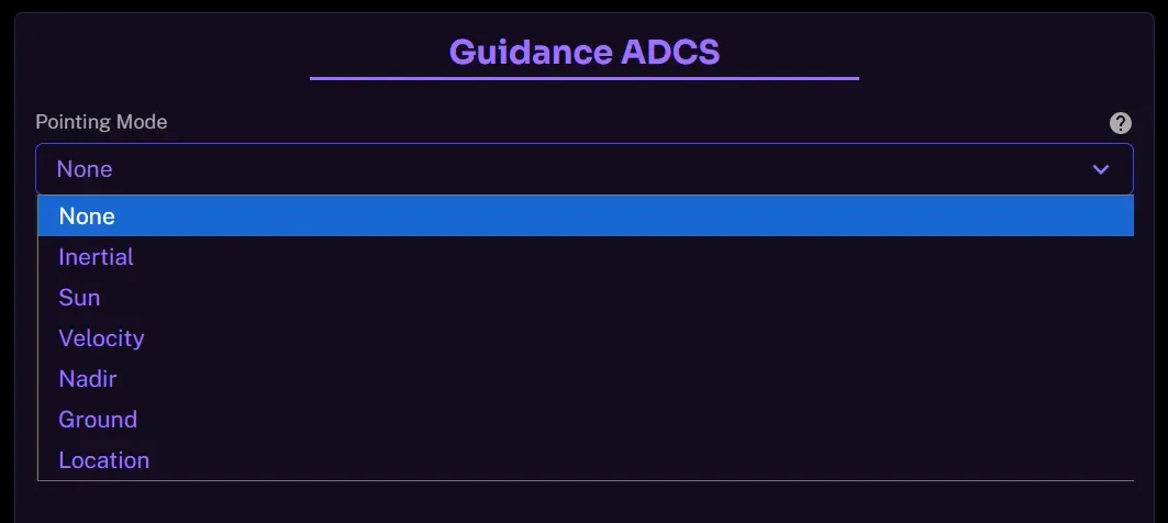 The spacecraft control provides a variety of pointing modes preprogrammed as a part of its Guidance ACDS.